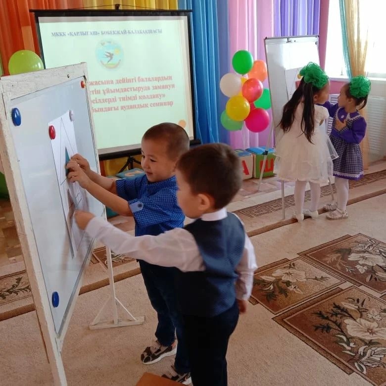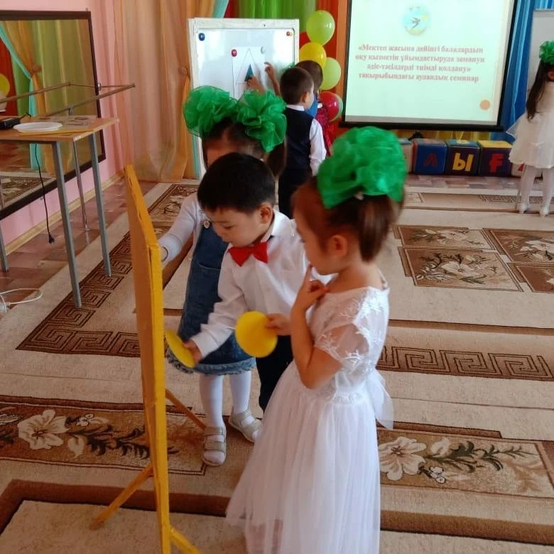 Тәрбиеші Кулшина А.А.Семинар барысындағы тамаша бір сәттерден көрініс. Таным саласы. Ұйымдастырылған ашық оқу қызметі.